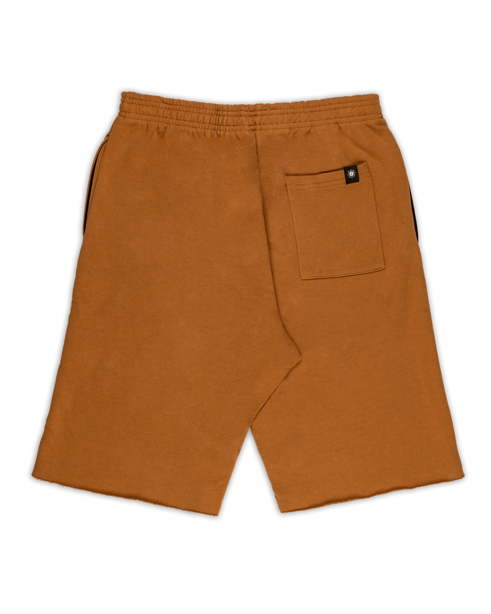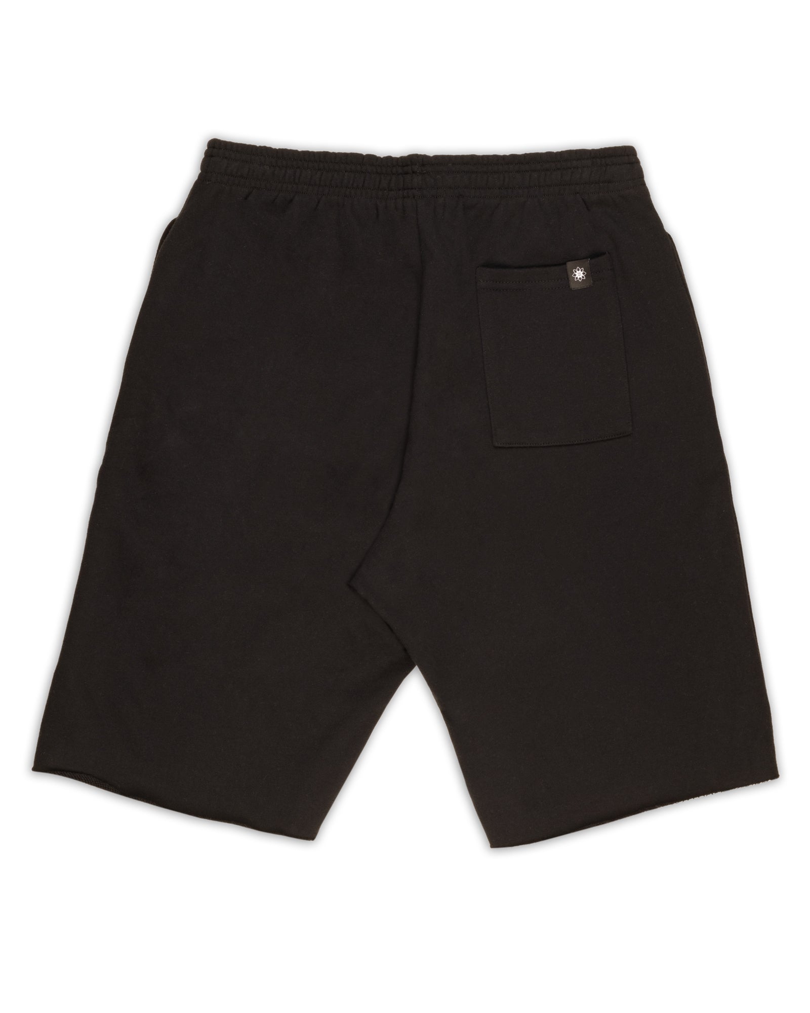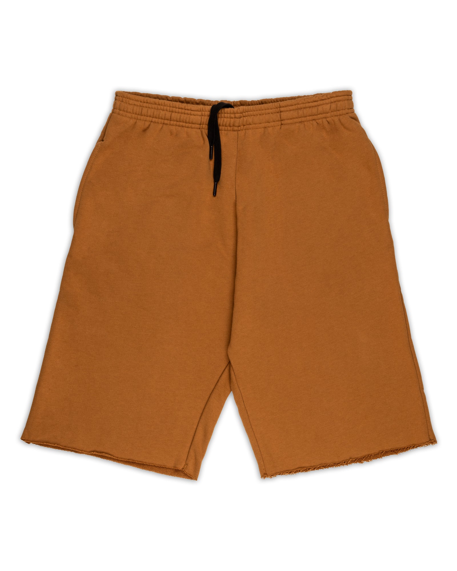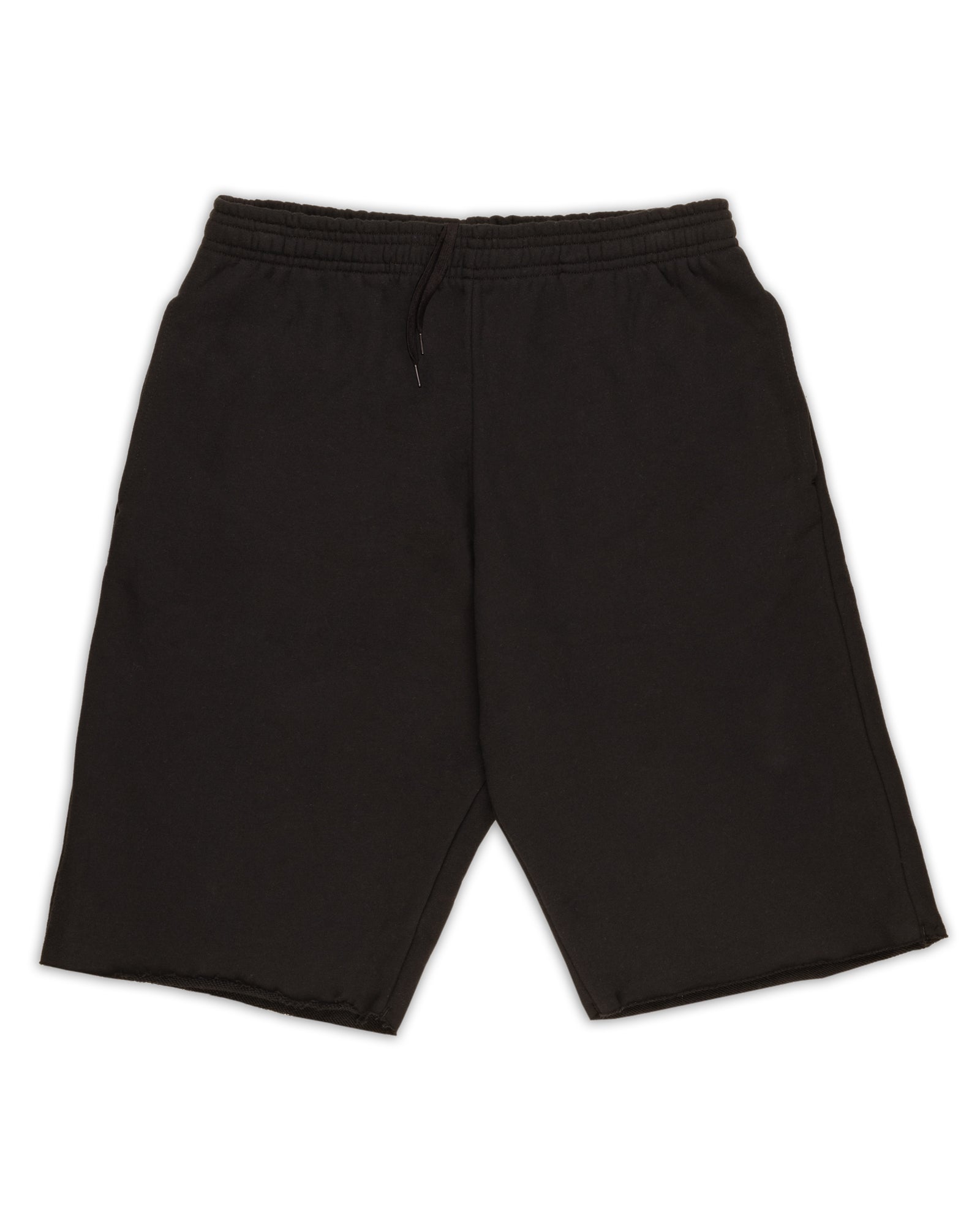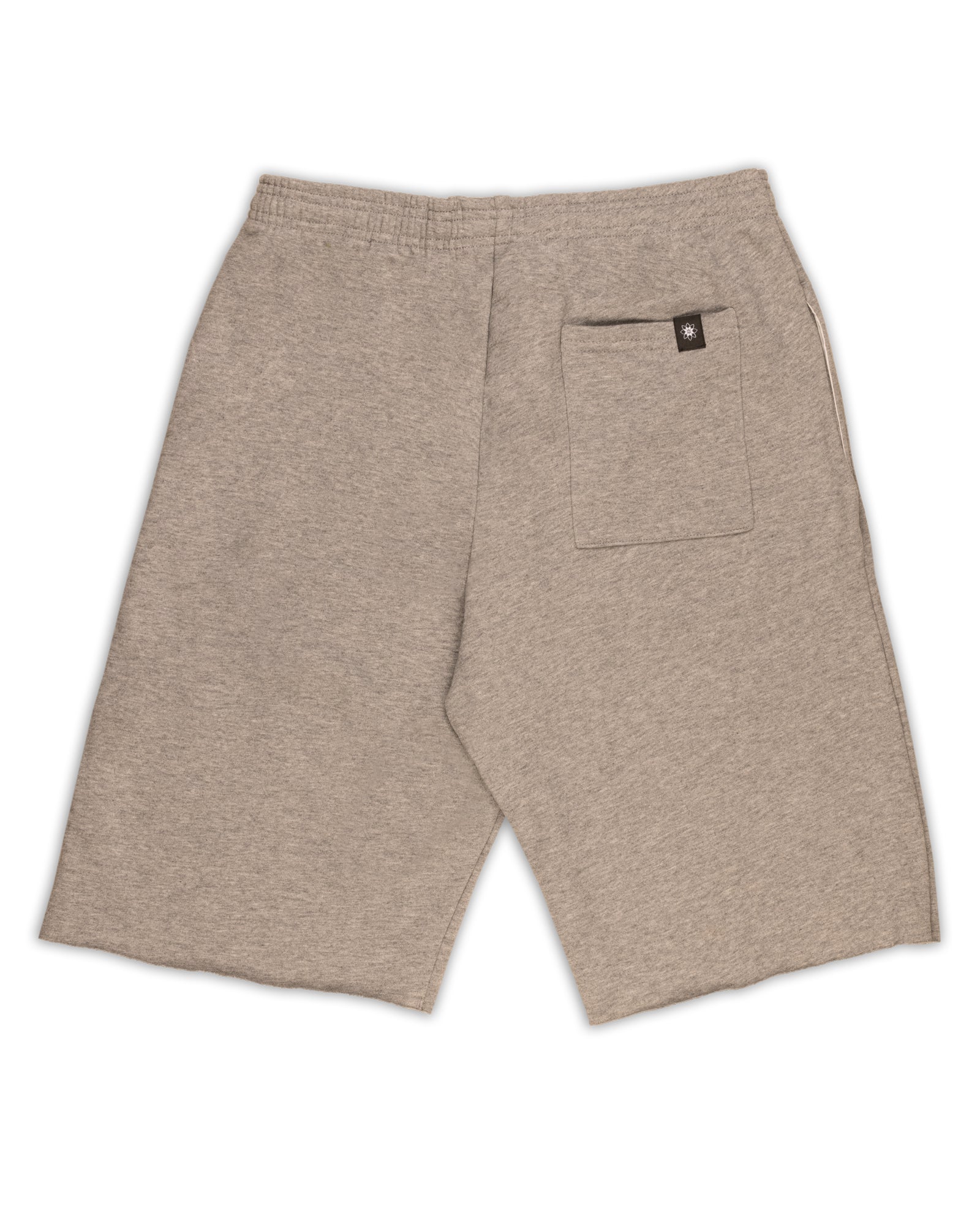 Cut off shorts: made in Los Angeles, these shorts feature a raw edge hem, elastic waistband, and drawstring for a perfect fit. With side seam pockets and an icon clip labeled back pocket, they combine functionality with edge. Available in classic grey, nutmeg, and black.