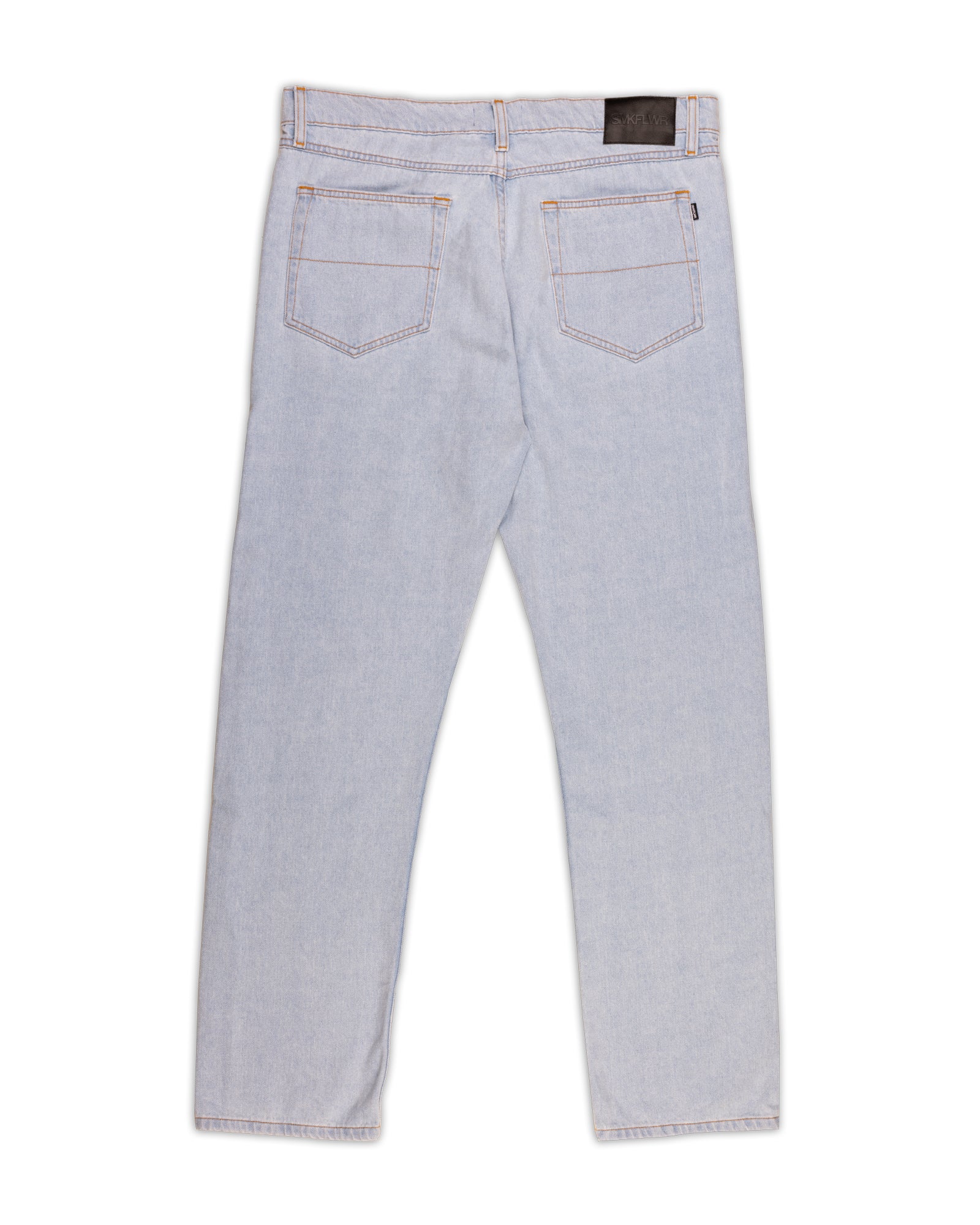 Brand new for fall, this ultra-soft light washed indigo pant is the perfect denim for daily use. Pairs well with just about any SMKFLWR top and especially when coupled with the matching Trucker Jacket. Classic straight leg design for max comfort and forever enjoyment. Available in three colors. Made in Los Angeles.