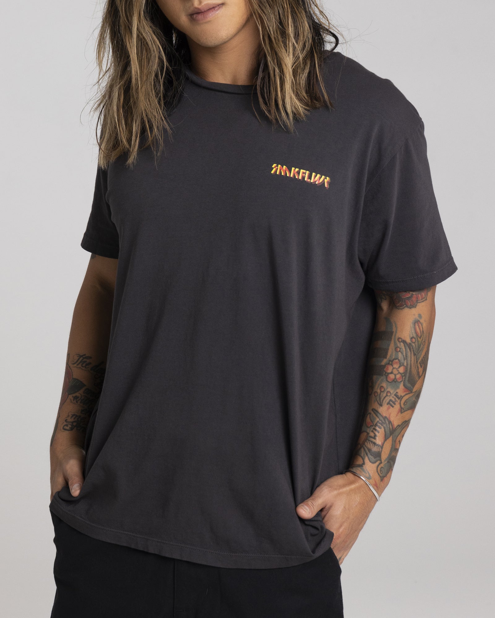 The Short Sleeve Crewneck Vintage Tee is made with 100% cotton 30/1's jersey and features screen-printed retro music graphics